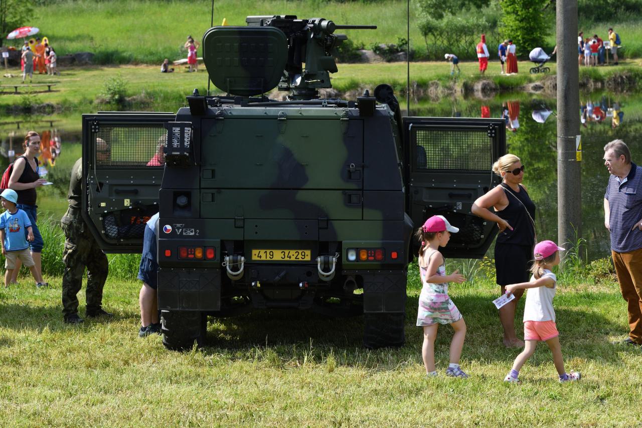 Velkým překvapením a zážitkem pro malé i velké byla ukázka vojenské techniky a zbraní vojenského útvaru 6069 z Jindřichova Hradce. Děti si mohly zblízka prohlédnou vojenskou Tatru, lehké obrněné Iveco či si vyzkoušet, jaké to je řídit obojživelné bojové vozidlo Pandur. To vše navíc s komentářem ostřílených příslušníků České armády.