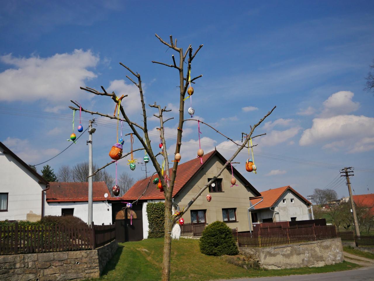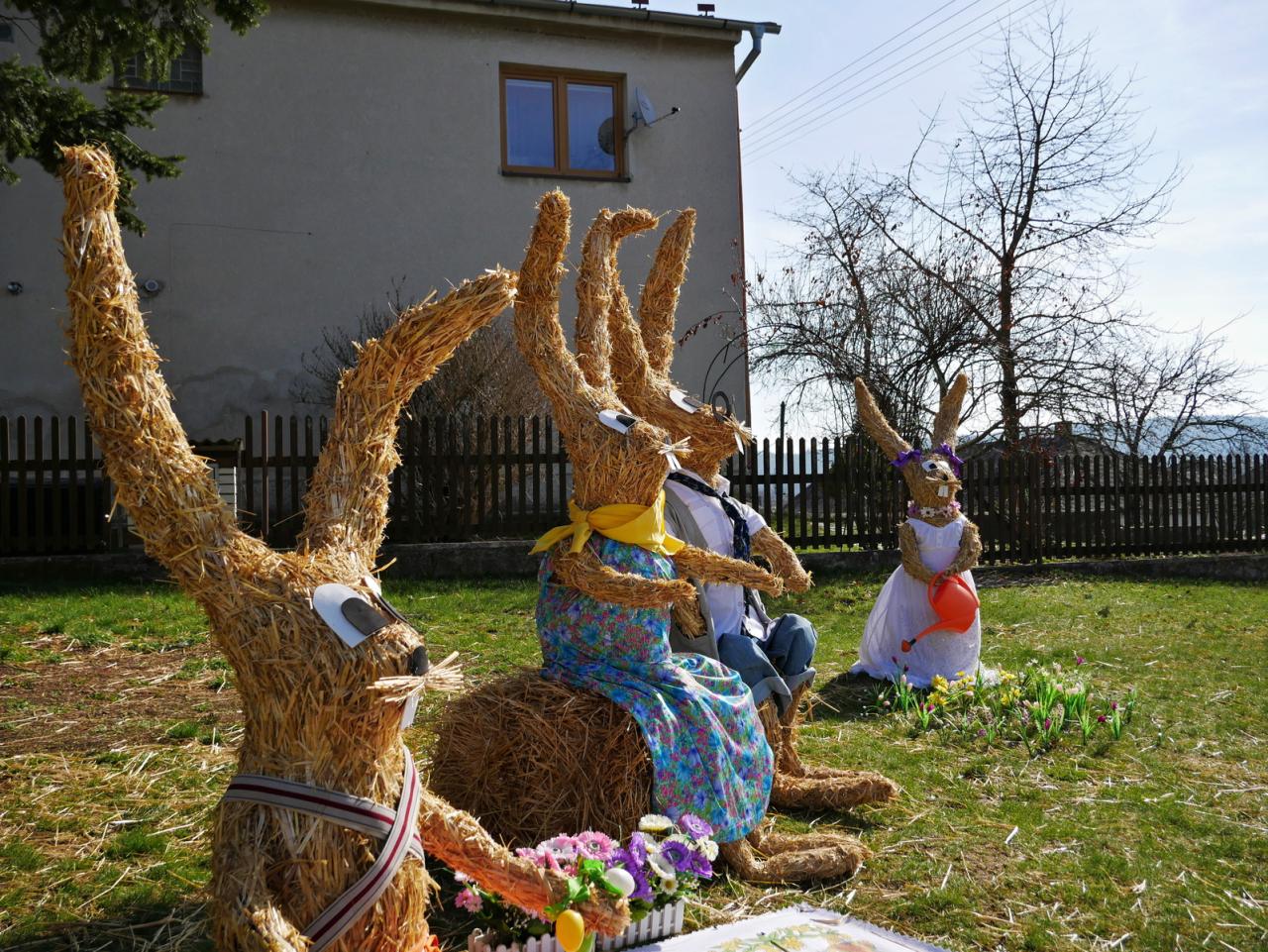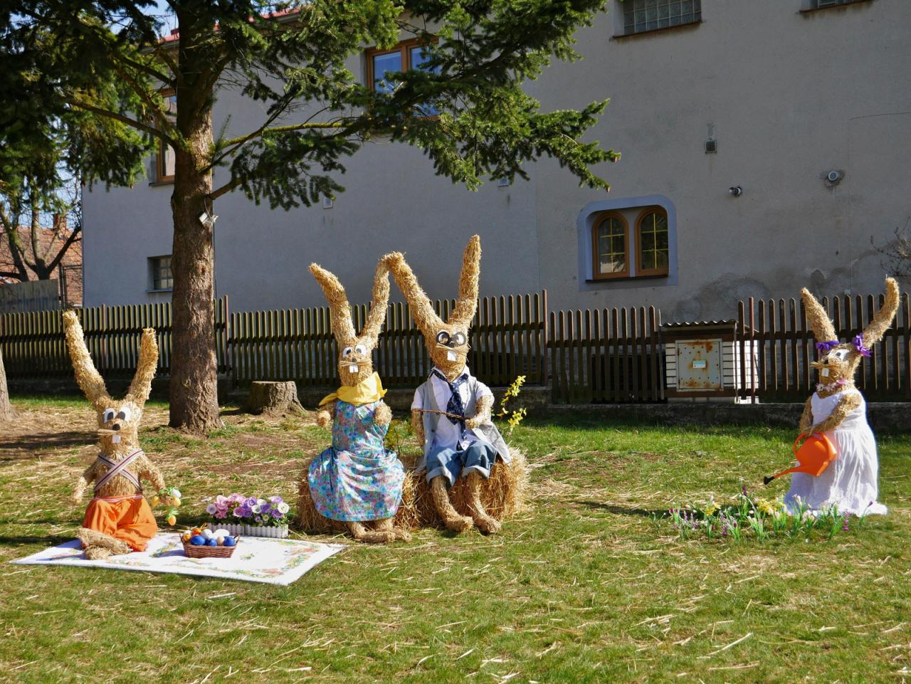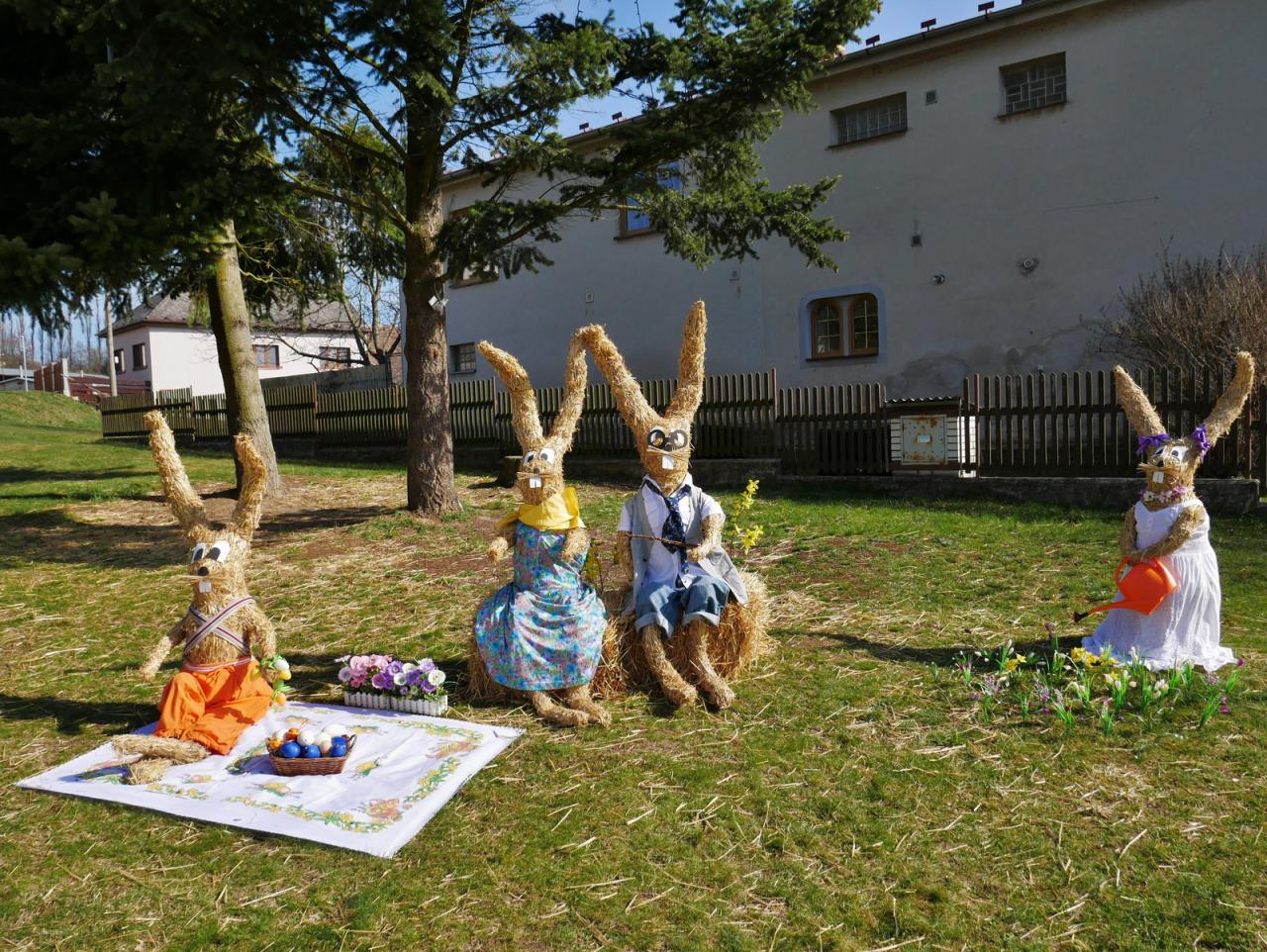 Jak je již v naší obci tradicí i letos ji navštívila zaječí rodinka. U kapličky se zabydlel beránek a v parku před obecním úřadem se uhnízdila slepička. Za zhotovení velikonoční výzdoby děkujeme Míle Vyskočilové a Pavle Klimešové.