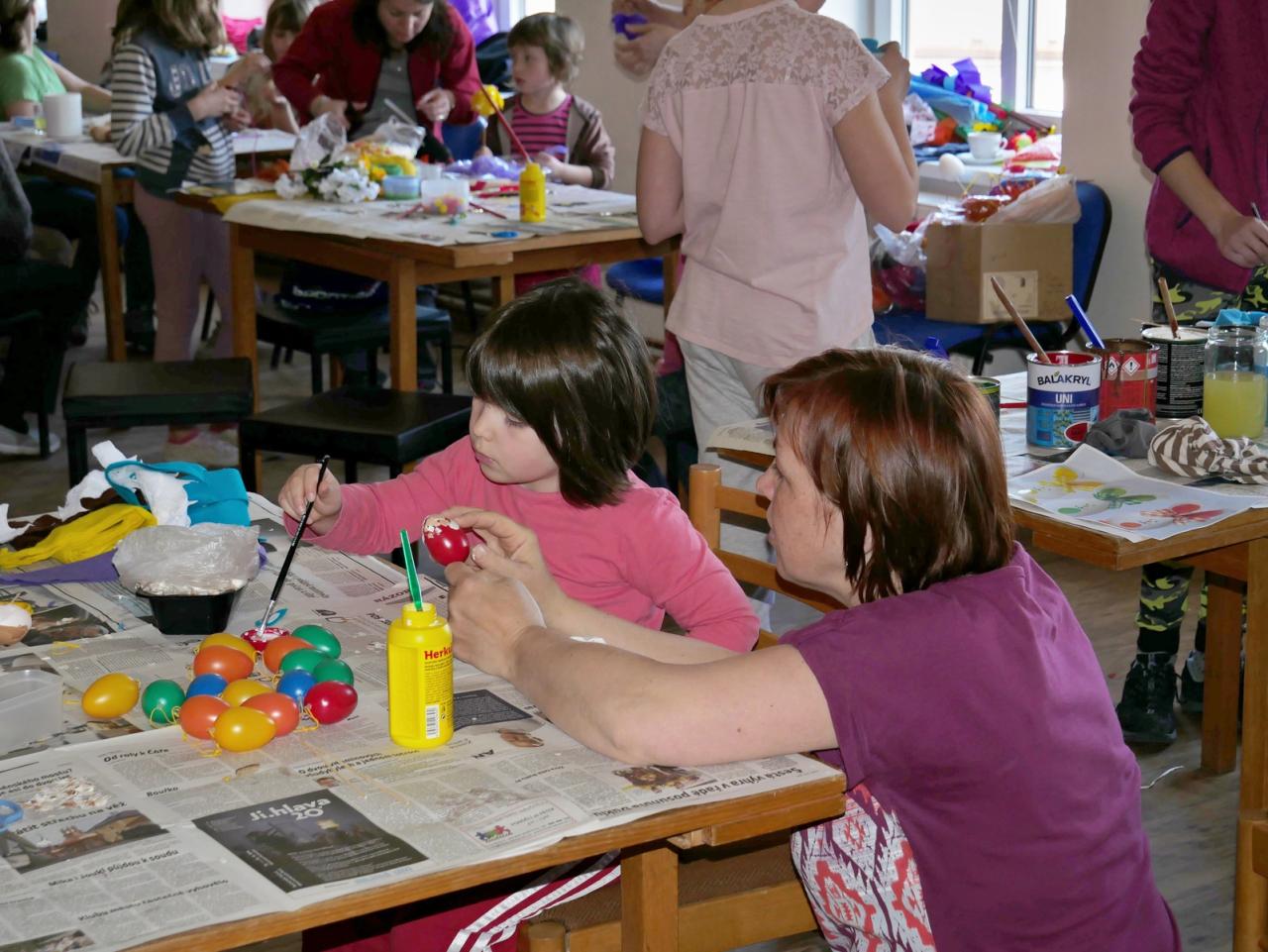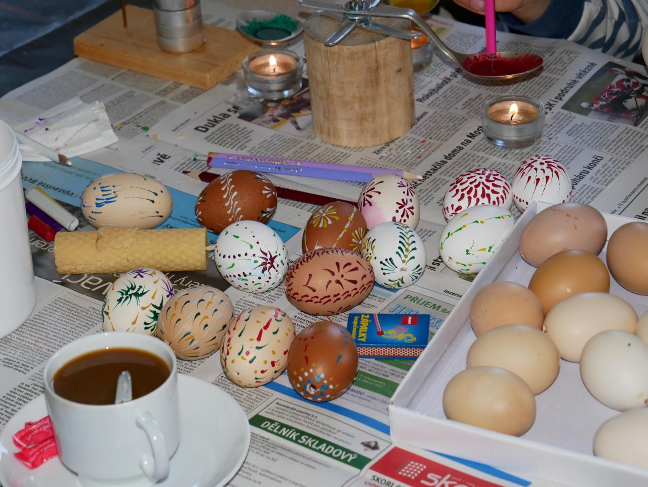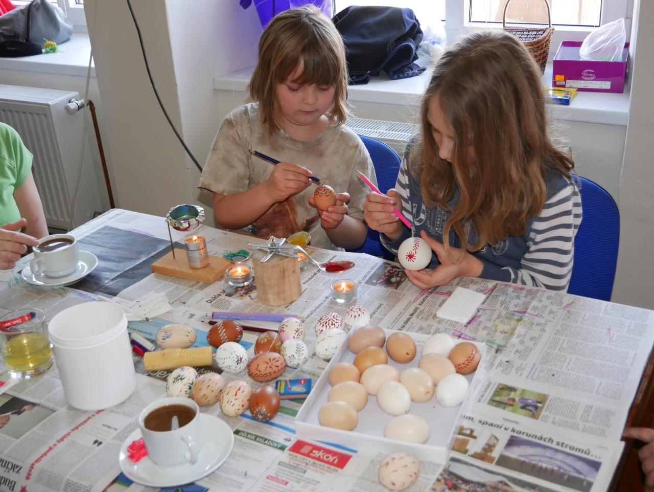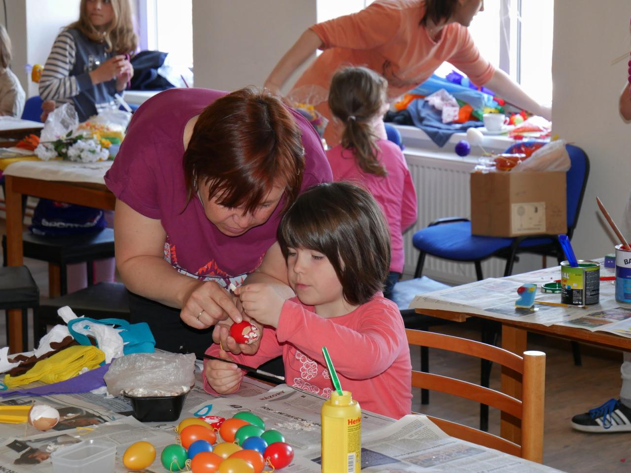 V sobotu 1.4. se pak uskutečnilo velikonoční tvoření pro maminky s dětmi i pro dospělé. Vajíčka se nejen malovala, ale připraveny byly také jiné techniky zdobení. Hotová vajíčka dětí byla poté vystavena na připravených velikonočních dekoracích v naší obci.