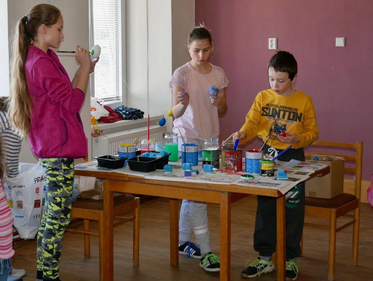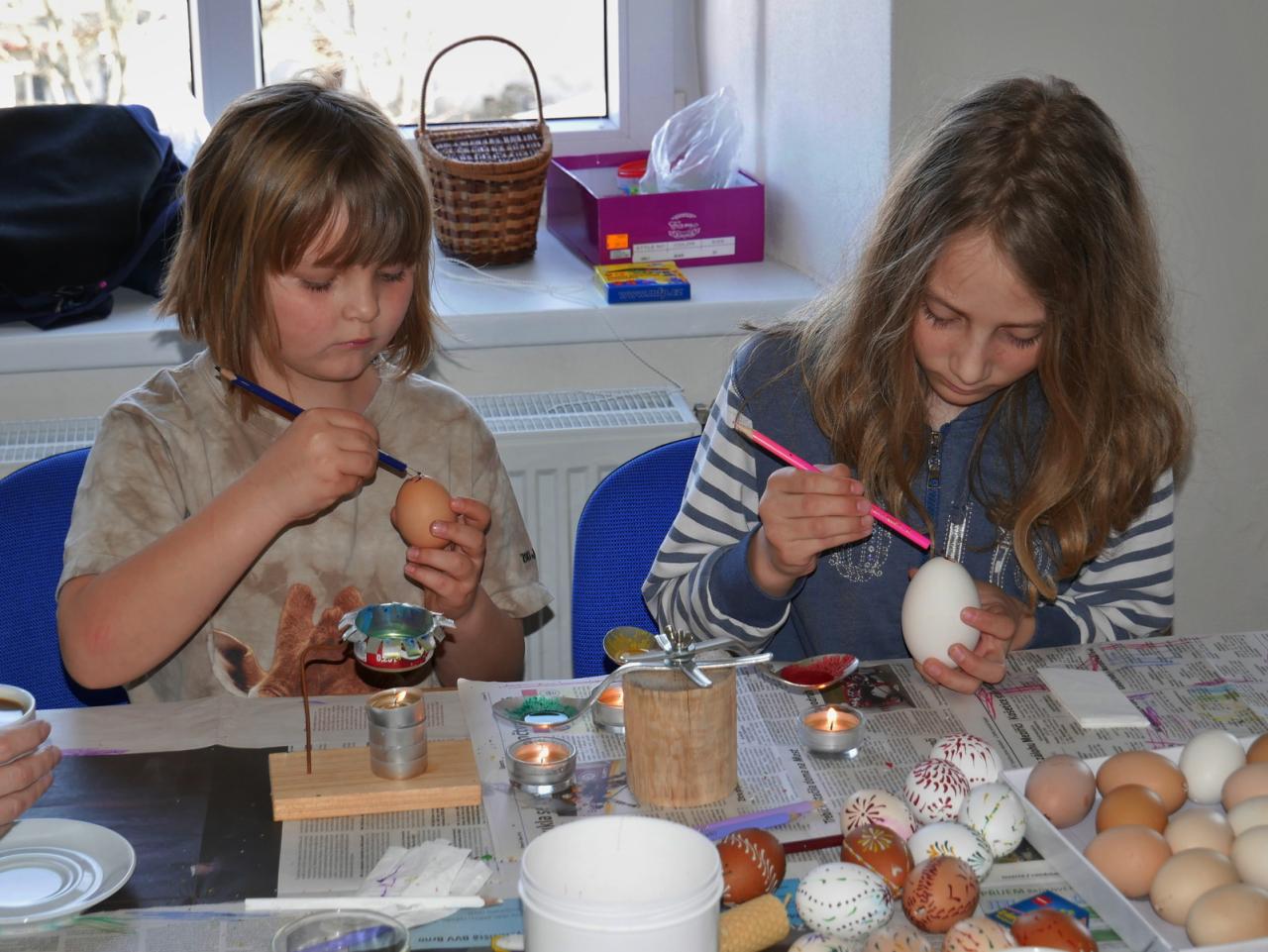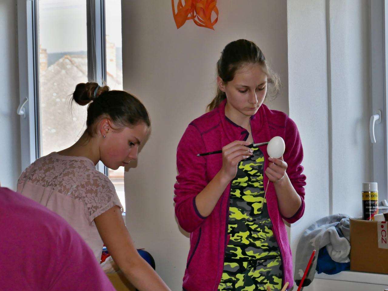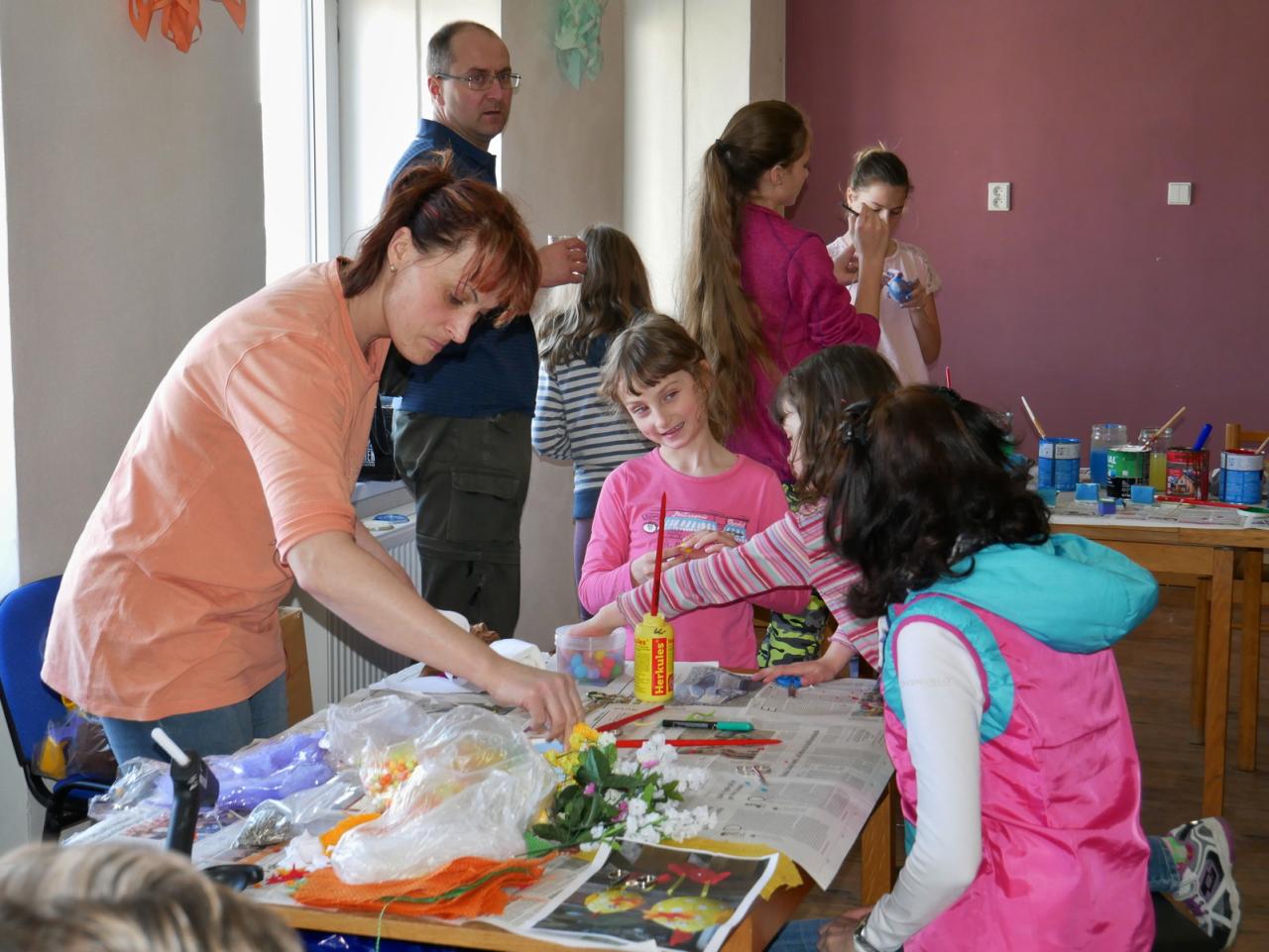 V sobotu 1.4. se pak uskutečnilo velikonoční tvoření pro maminky s dětmi i pro dospělé. Vajíčka se nejen malovala, ale připraveny byly také jiné techniky zdobení. Hotová vajíčka dětí byla poté vystavena na připravených velikonočních dekoracích v naší obci.