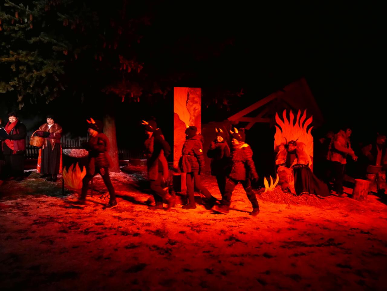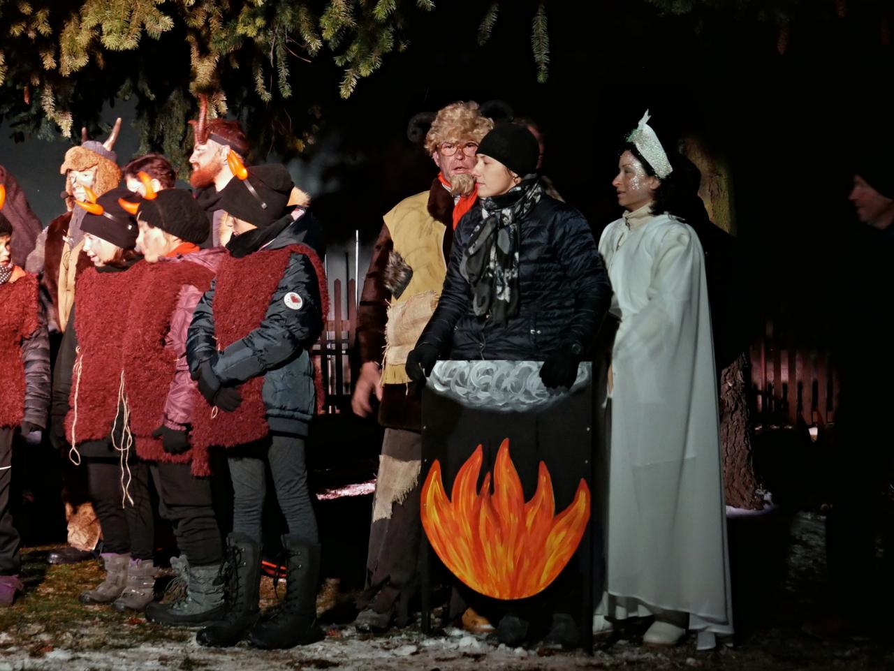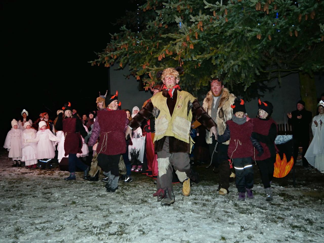 V sobotu 1.12. jsme se v hojném počtu sešli u našich vánočních stromů, abychom společně otevřeli bránu do času adventu. Cejlečtí divadelní ochotníci si pro diváky připravili příběh, který se odehrával v naší malebné vesničce, v pekle, které se otevřelo pod Cejlí, a také v nebi, z něhož se k nám snesli andělé za doprovodu malých andílků. Pohádková babička nám vyprávěla o hříšné duši drbny Klepáčkové, kterou si odnesli čerti a z jejich svárů ji mohl vysvobodit vesnický lid veselou písničkou, láskou a radostí. A protože v Cejli máme pěvecký sbor, který má zvučný hlas a zpívá s láskou a radostí, zalekli se i v pekle a drbnu Klepáčkovou navrátili zpět. V tu chvíli se odehrál na nebi zázrak, který se proměnil v nádherný andělský tanec. Pěvecký sbor doprovázely svým tancem sněhové vločky, vrby a kůzlátka. Na závěr vánočního příběhu se šťastným koncem se nám slavnostně otevřely Cejlecké betlémy, které nás i letos překvapily novinkami. Děkujeme všem účinkujícím, organizátorům, stavitelům a lidovým tvořitelkám. Celé video našeho vystoupení můžete shlédnout zde: https://youtu.be/0hPhwKo4cWE.