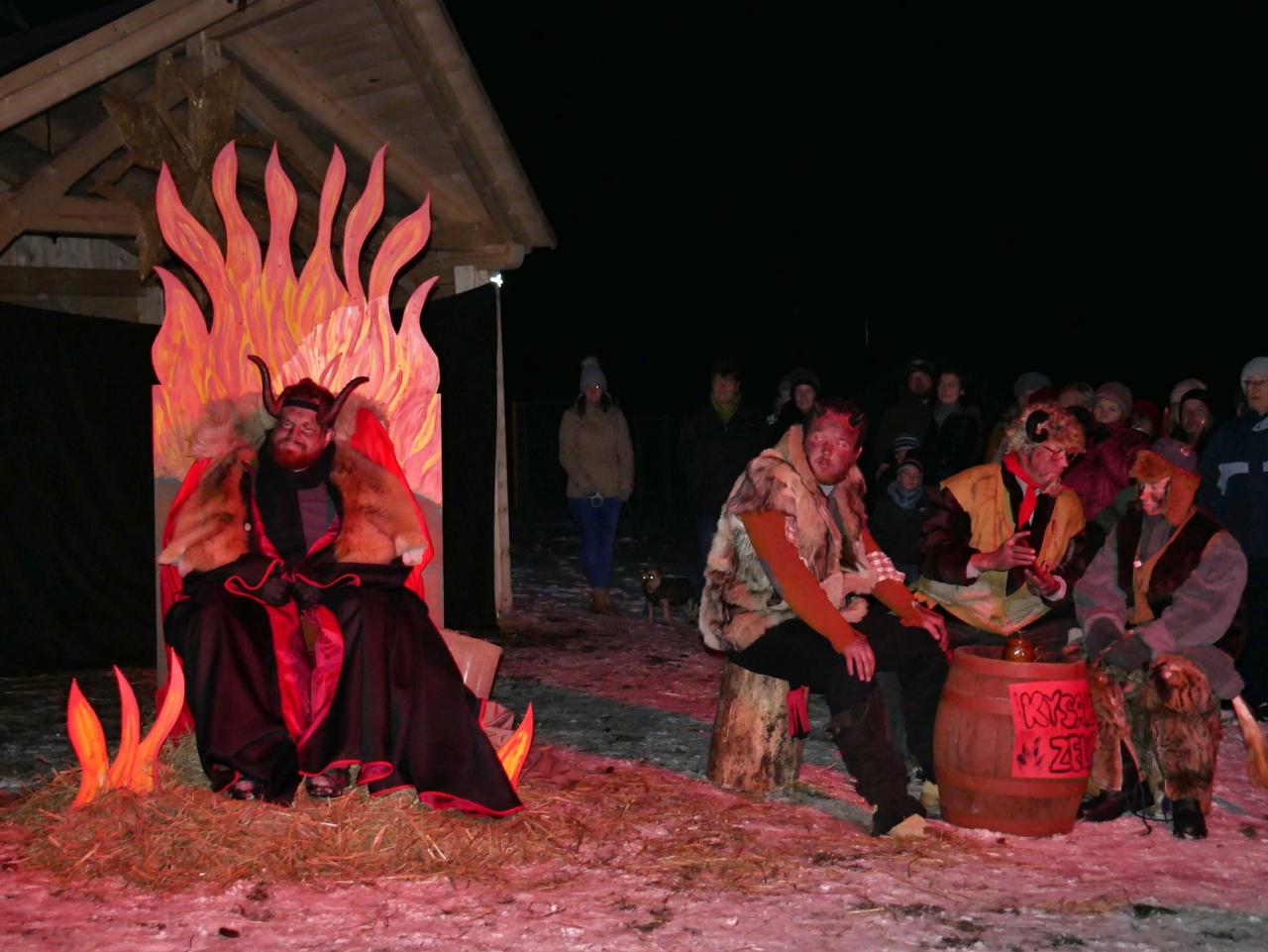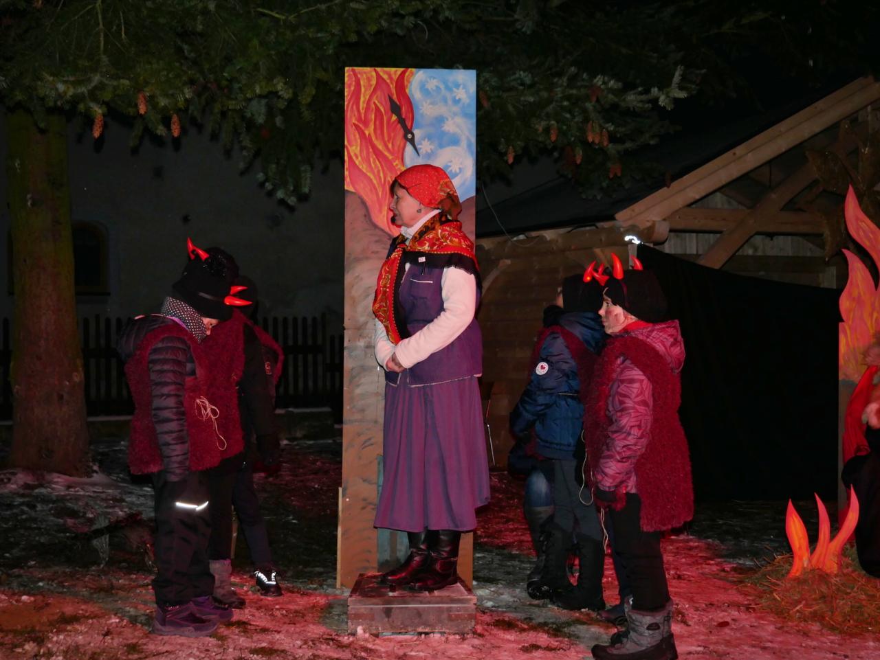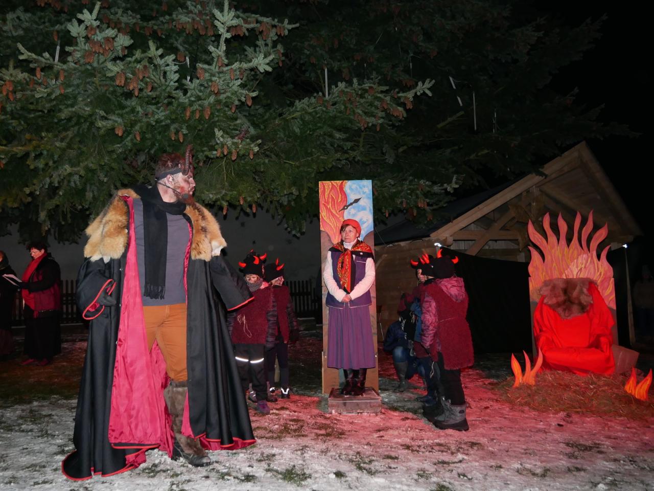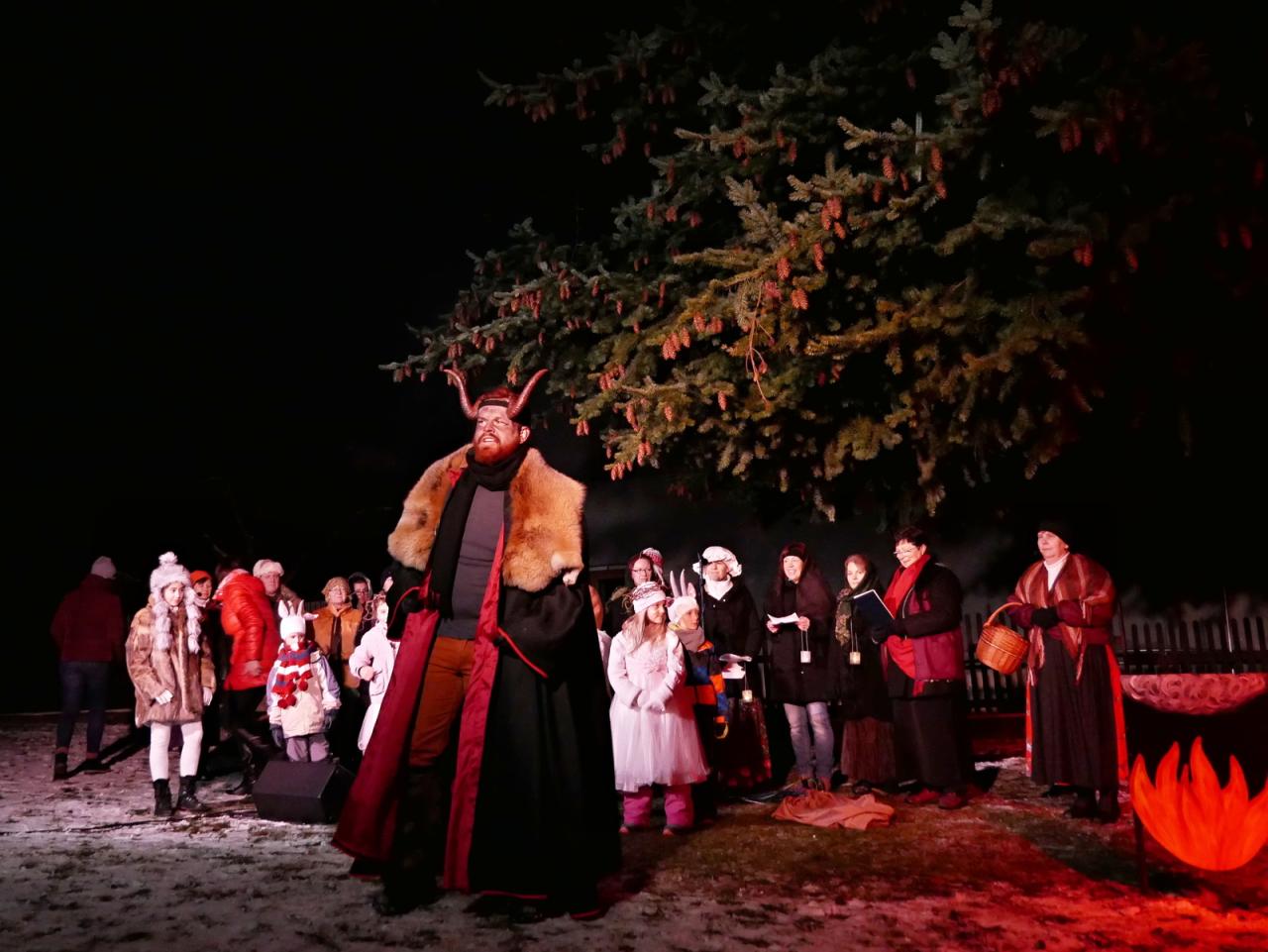 V sobotu 1.12. jsme se v hojném počtu sešli u našich vánočních stromů, abychom společně otevřeli bránu do času adventu. Cejlečtí divadelní ochotníci si pro diváky připravili příběh, který se odehrával v naší malebné vesničce, v pekle, které se otevřelo pod Cejlí, a také v nebi, z něhož se k nám snesli andělé za doprovodu malých andílků. Pohádková babička nám vyprávěla o hříšné duši drbny Klepáčkové, kterou si odnesli čerti a z jejich svárů ji mohl vysvobodit vesnický lid veselou písničkou, láskou a radostí. A protože v Cejli máme pěvecký sbor, který má zvučný hlas a zpívá s láskou a radostí, zalekli se i v pekle a drbnu Klepáčkovou navrátili zpět. V tu chvíli se odehrál na nebi zázrak, který se proměnil v nádherný andělský tanec. Pěvecký sbor doprovázely svým tancem sněhové vločky, vrby a kůzlátka. Na závěr vánočního příběhu se šťastným koncem se nám slavnostně otevřely Cejlecké betlémy, které nás i letos překvapily novinkami. Děkujeme všem účinkujícím, organizátorům, stavitelům a lidovým tvořitelkám. Celé video našeho vystoupení můžete shlédnout zde: https://youtu.be/0hPhwKo4cWE.