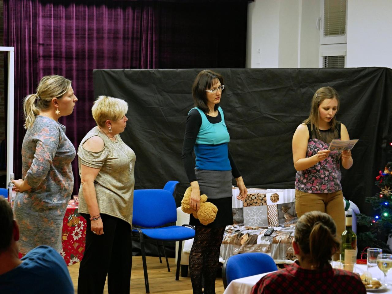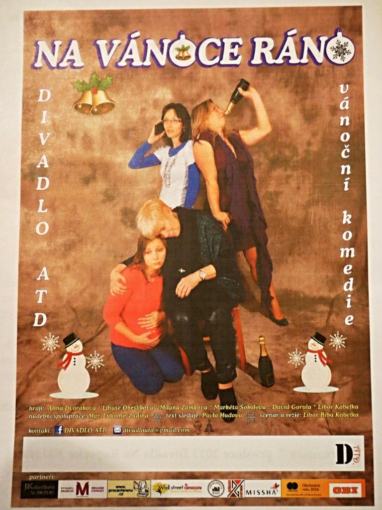 V pátek 14.12 v 19.00 hodin do naší cejlecké vinárny přijel divadelní soubor ATD s vánočně laděnou komedií, která nám vyprávěla o setkání matky a jejich tří dcer. Vynikající herečky Anna Dvořáková, Libuše Obršlíková, Milana Zámková a Markéta Sokolová pod vedením režiséra Libora Kabelky nás formou vtipných dialogů a situací zavedli do běžného života, který se nám v tomto pohodovém vyprávění zdál naprosto komický. Děkujeme všem za krásné odreagování v předvánočním shonu.