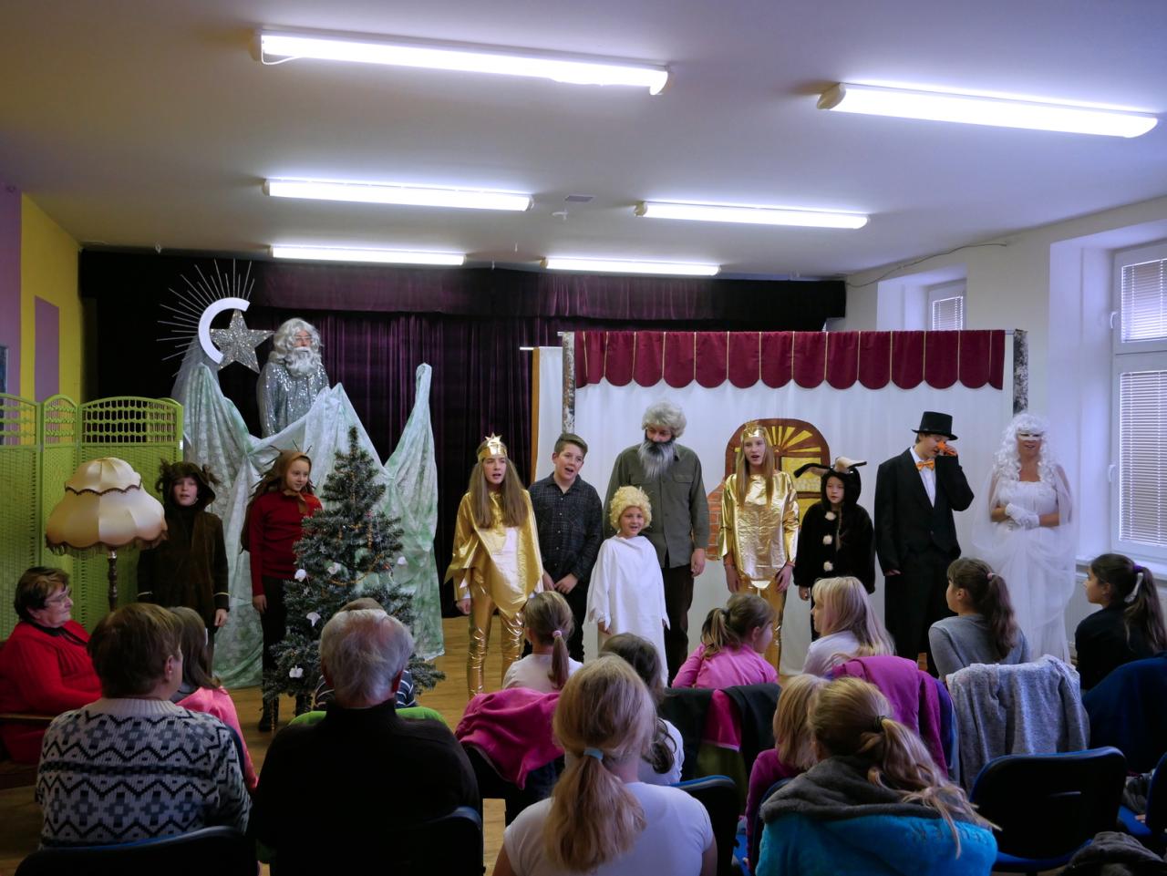 V neděli 2.12. k nám do kulturního zařízení přijel dětský divadelní soubor Jana Lišky z Třeště a vyprávěl nám kouzelný příběh o Vašíkovi, který málem neměl na Štědrý večer vánoční stromeček. Ale proto, že malý Vašík měl velké srdce a za pomoci měsíce a hvězdiček přinesl hladovým zvířátkům do lesa pamlsky, čekalo ho po návratu domů za dědečkem velké překvapení. Pohádka protkaná vánočními koledami pohladila na duši děti i dospělé.