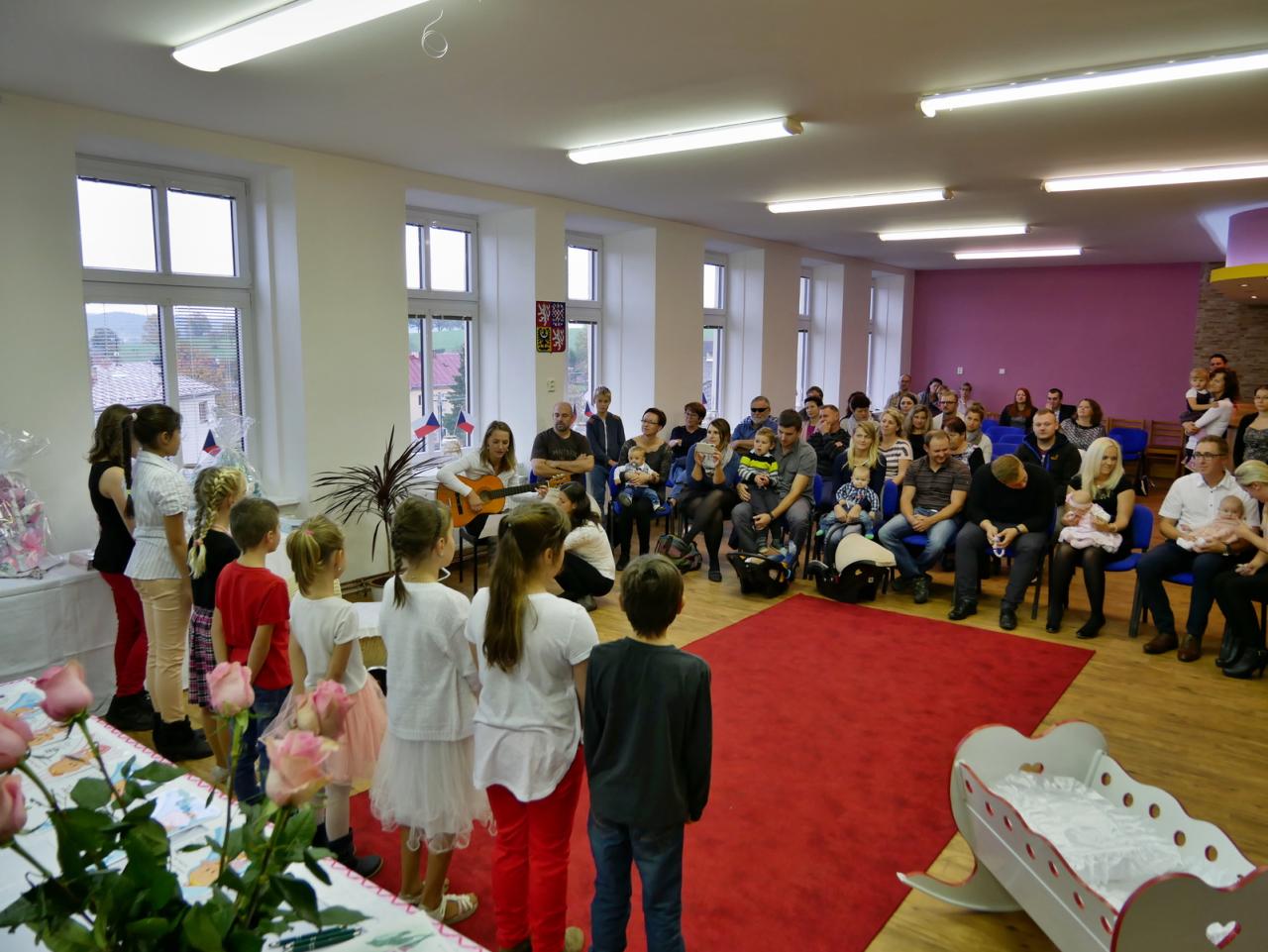 Dne 27.10. jsme se sešli v kulturním zařízení, abychom slavnostně přivítali nové občánky naší obce. Tentokrát jsme vítali 4 chlapce a dvě holčičky. Pro malé občánky i rodiče si kulturní pásmo připravily děti z mateřské a základní školy.