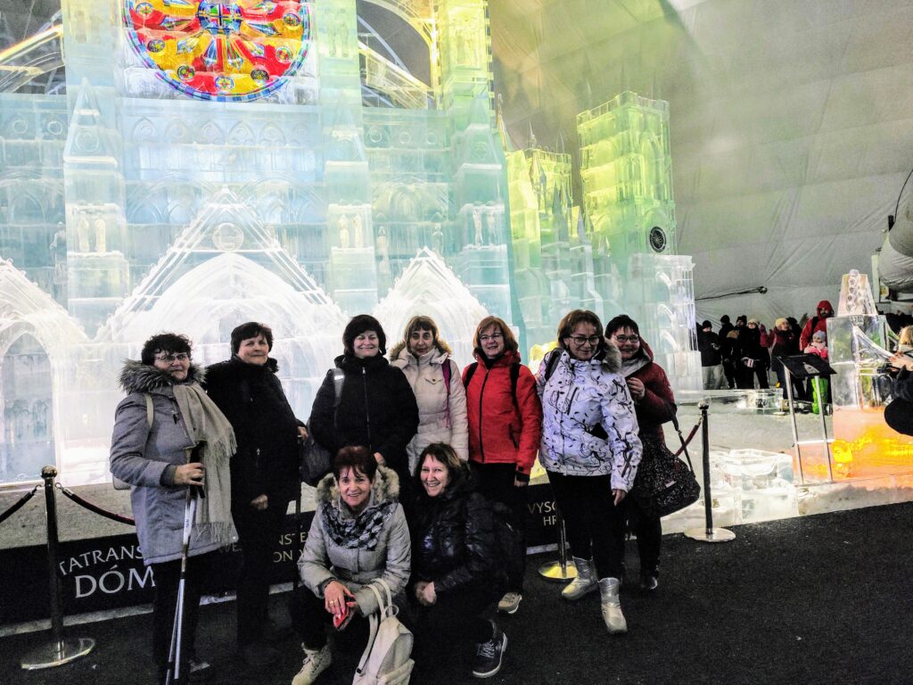 V utorok 13.02.2024 skoro ráno sa vlakom vyberáme na seniorské potulky do Vysokých Tatier – presnejšie na Hrebienok. Hlavým cieľom je pozrieť si Tatranský ľadový dóm, ktorý je dominantou a najnavštevovanejšou atrakciou vo Vysokých Tatrách. Inšpiráciou pre 11. ročník ľadového dómu bolo londýnske Westminster opátstvo. Ani tlačenica vo vlaku do Smokovcov nás neodradila od nášho zámeru. Aj v lanovke na Hrebienok nebolo veľa miesta. Kráľovský chrám bol majestátny. Poprezerali sme si i ľadové sochy vo vedľajšej kopule a niektoré členky sa vybrali aj na kratšiu túru na Rainerovu chatu, kde obdivovali ručne vyrobený Betlehem zo snehu, Tatry boli zasnežené len čiastočne. Ale i tak 16-tim členom našej JDS pripomenuli zimu, akú si pamätáme z detstva.