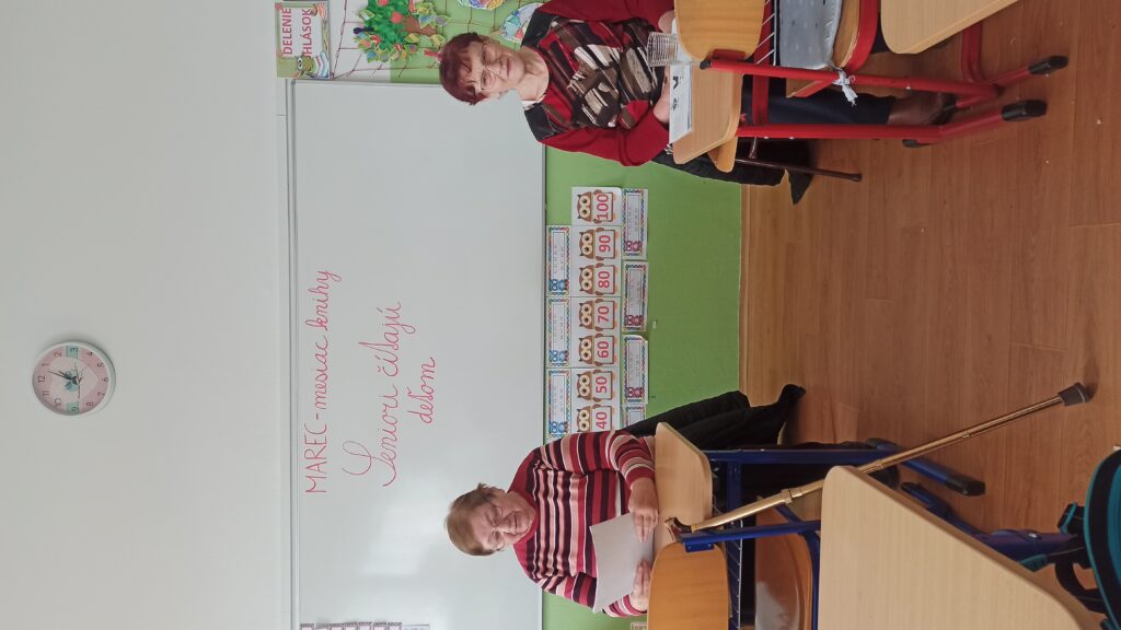V mesiaci marec boli členovia JDS Pobedim prizvaní k čitateľskému projektu do Základnej školy s materskou školou Jána Hollého v Pobedime. Projekt školského klubu detí niesol názov „Seniori čítajú deťom“. Na dve piatkové popoludnia sa teda súčasťou školského klubu detí stali aj niektoré členky JDS. 15. marca členky JDS Oľga Klimová a Anna Kollárová deťom priblížili knihu O psíčkovi a mačičke od Josefa Čapka a 22. marca medzi deti zase zavítali členky Ľudmila Pätnická a Anna Lednická, ktoré deťom odprezentovali nemenej známu knihu Danka a Janka od Márie Ďuríčkovej. Seniori svojim čítaním a nadväzujúcimi aktivitami prispeli k hodnotnému a zároveň aj zaujímavému prežitiu dvoch marcových popoludní, za čo si zaslúžili poďakovanie vychovávateliek Mgr. Lenky Klimovej a Evy Virčíkovej, ale najmä samotných detí, ktoré seniorkám na záver spoločného popoludnia odovzdali vlastnoručne vyrobené záložky a kvet z papiera.